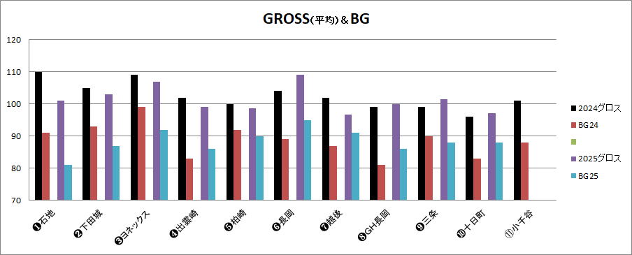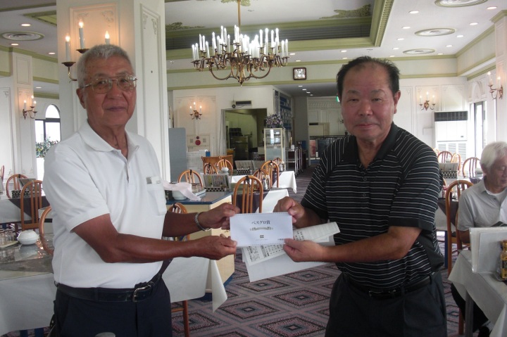 ベスグロ賞(平均グロス97.2)は、4位の五十嵐(正)さんでネット70、グロス88(43.45)の成績でした。(今季3回目)。
